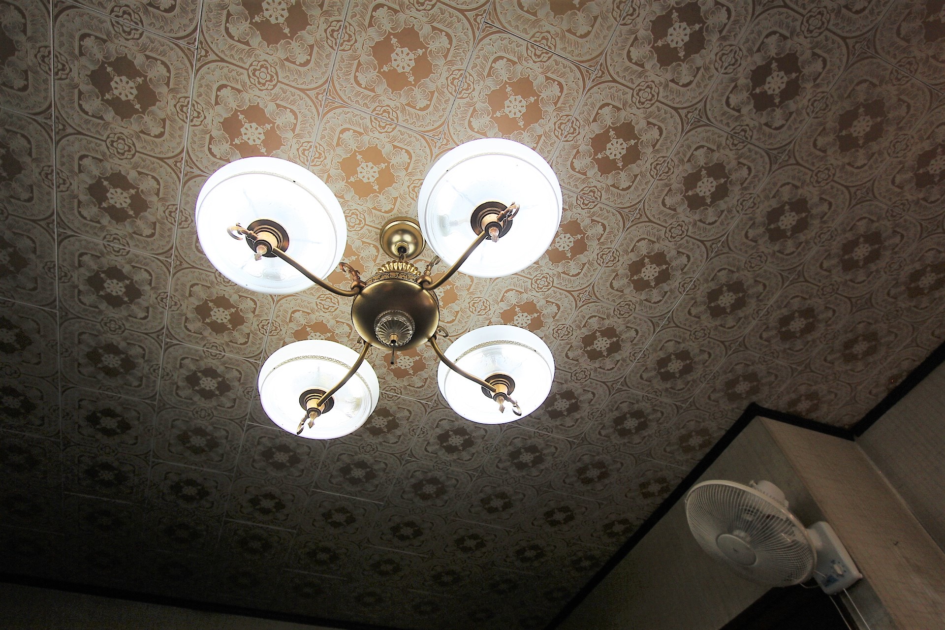 和洋折衷な照明にレトロな模様が印象的な天井も良い感じです!