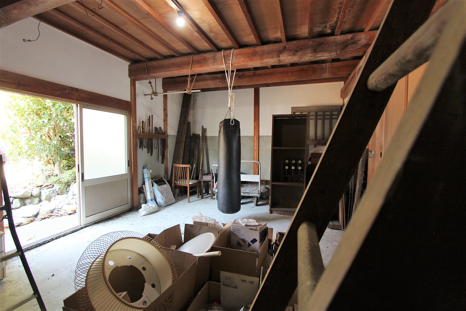 あしたのジョー的なサンドバックが印象的な離れの倉庫!